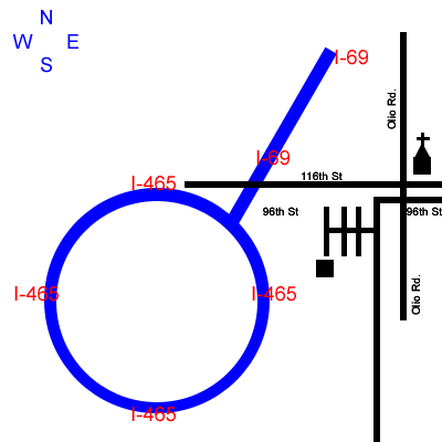 and Map for the Reception Turn left out of the church parking lot. Go to 96th St and turn right. Turn left at the dead end. Turn right onto Old Stone Dr. Go through 2 stop signs and turn left into the Geist Clubhouse entrance at the 3rd stop sign.. |